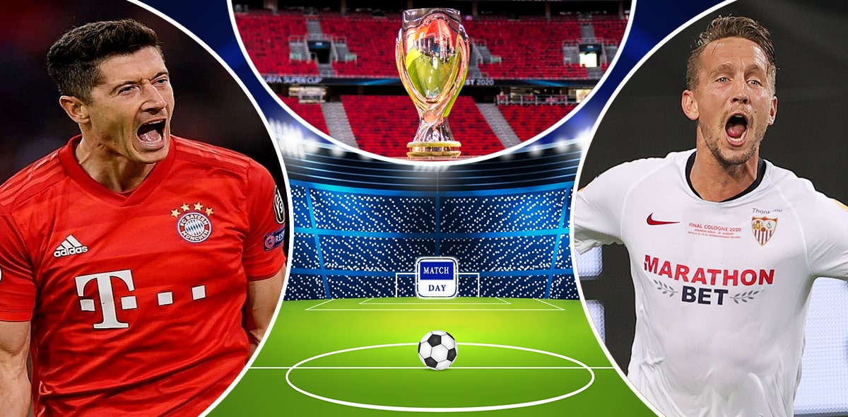 تنطلق مباراة بايرن ميونخ وإشبيلية في السوبر الأوروبي في تمام الساعة 19:00 بتوقيت جرينيتش، 22:00 بتوقيت مكة المكرمة، 21:00 بتوقيت القاهرة.