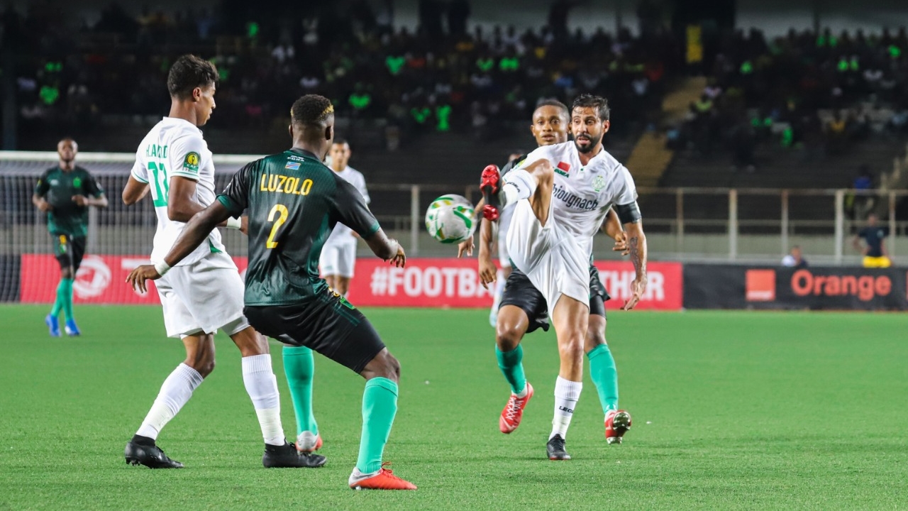 الدقيقة 28: محاولة خطيرة لصالح الرجاء الكرة خطيرة تمر من أمام الدفاع وحارس مرمى الفريق الكونجولي من قبل اللاعب حميد أحداد